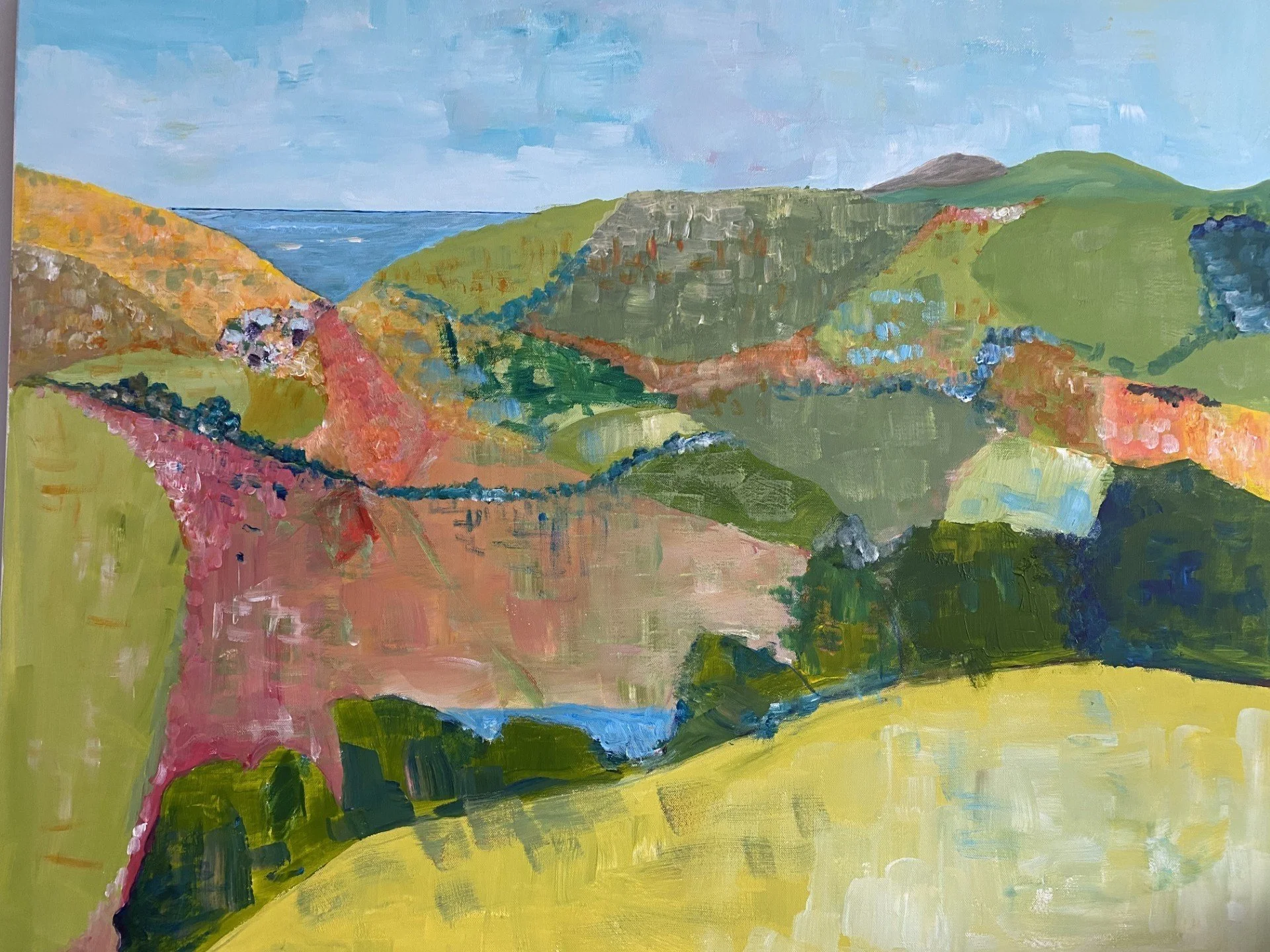 Having studied at the Ealing College of Art she now works from her cabin studio in the middle of an orchard in the Chilterns. She draws inspiration from everything around her – the trees - the garden - the people - the surrounding hills - occasional visits to the coast.